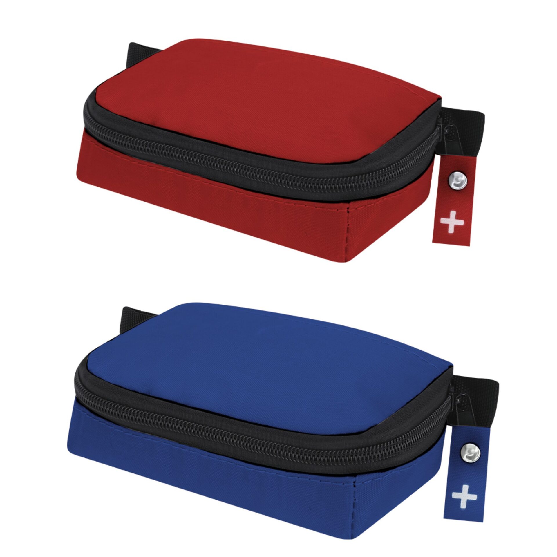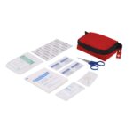 Contient : compresses, bandages, serviettes alcoolisées, ruban adhésif, épingles de sûreté et ciseaux.