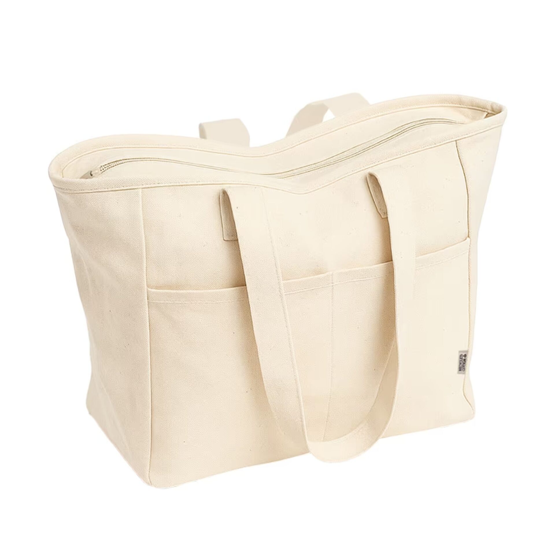 Généreux et robuste, ce tote bag en coton recyclé certifié Global Recycled Standard affiche un grammage de 450 g/m² pour un rendu vraiment solide. Ses longues anses et sa double poche frontale en font un sac aussi pratique qu'élégant, parfait pour le quotidien. En écru naturel, il offre une belle surface de personnalisation pour une marque qui assume ses engagements.