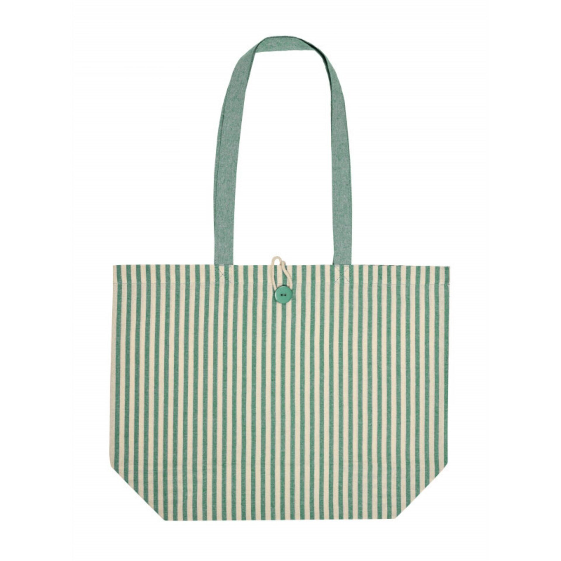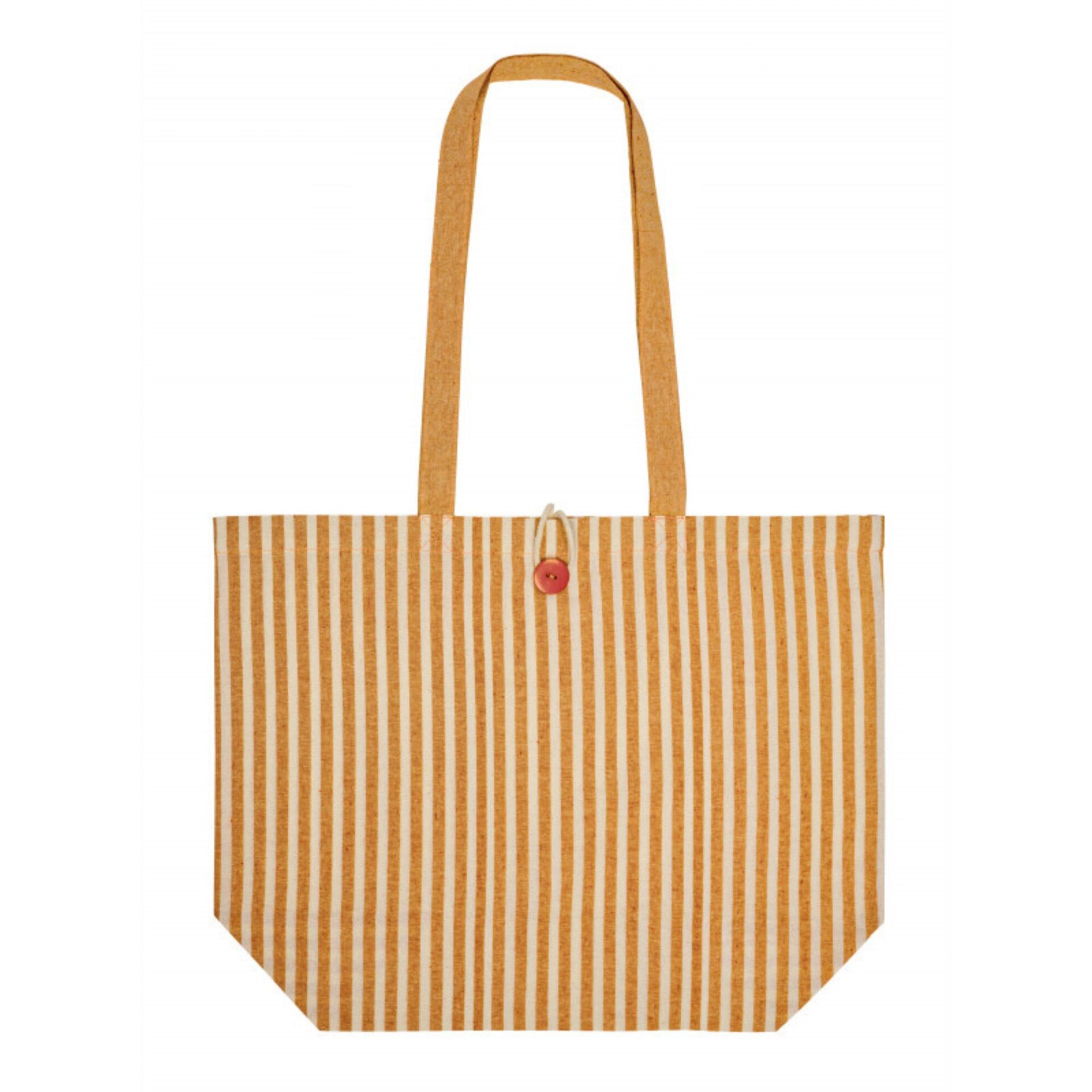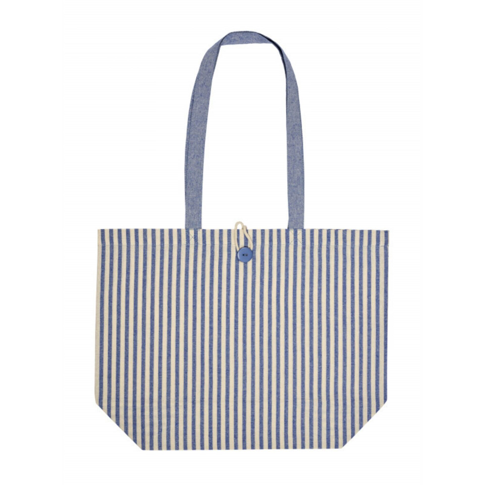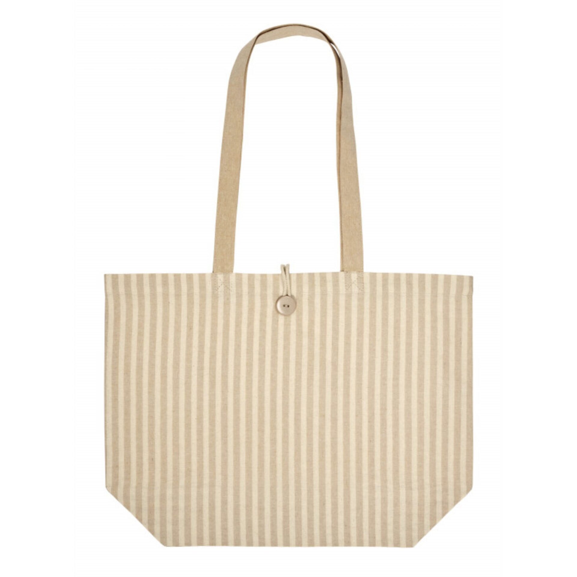 Rayures estivales et bouton en bois : ce sac shopping en coton 180 g/m² mise sur un style naturel et caractéristique. Son soufflet de 15 cm offre un volume généreux pour le quotidien, et ses longues anses assorties complètent un ensemble harmonieux. Disponible en 5 coloris, personnalisable sur une zone de marquage généreuse de 28x26 cm.