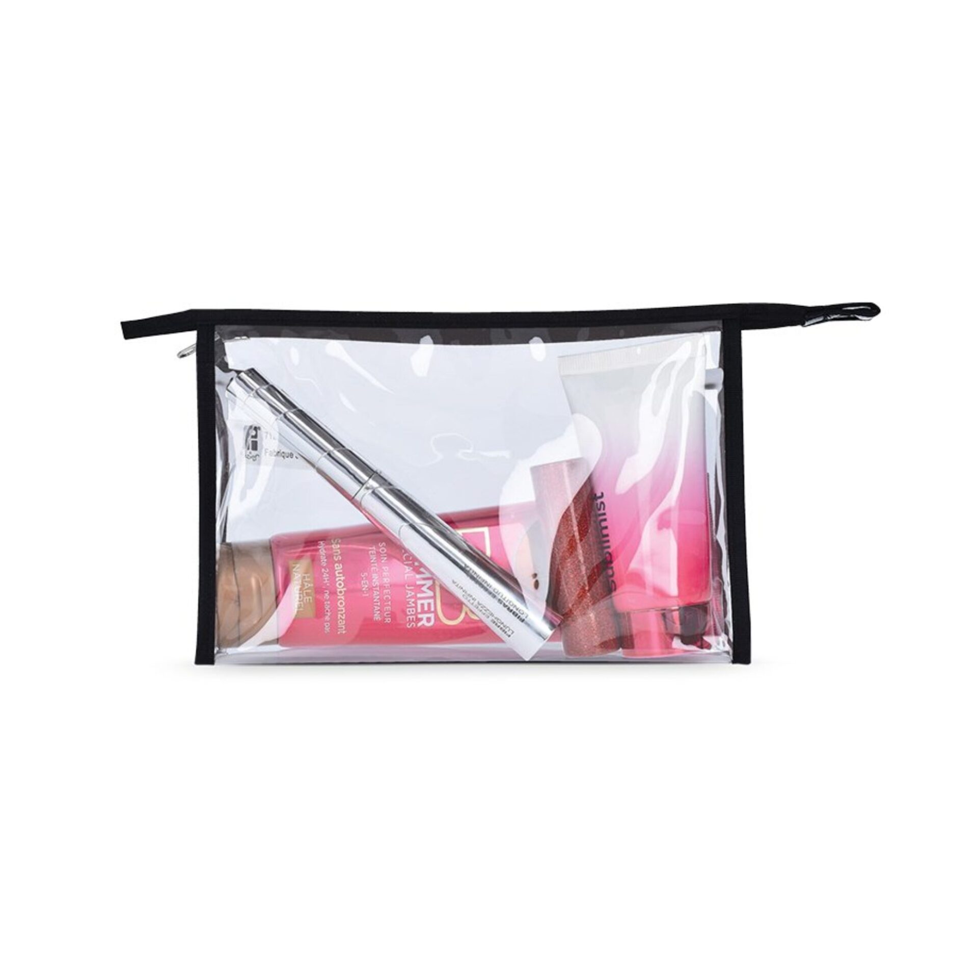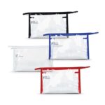 Pratique et réglementaire, cette trousse en PVC transparent avec fermeture éclair et passepoil en nylon est conçue pour le transport de liquides en bagage cabine. Claire, nette et personnalisable en sérigraphie ou tampographie, elle accompagne vos clients en voyage avec votre marque bien en évidence.
